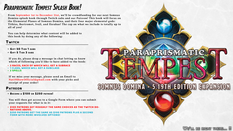 For those who need a reminder for how to contribute to our next book, the Paraprismatic Tempest, you can review the ways to donate here: